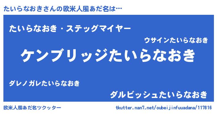| 意味不明あだ名 | 『自称たいらなおき』 |