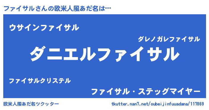| 男性向けラノベタイトル風あだ名 | 『おまえをオタクにしてやるから、俺をファイサルにしてくれ! 』 |