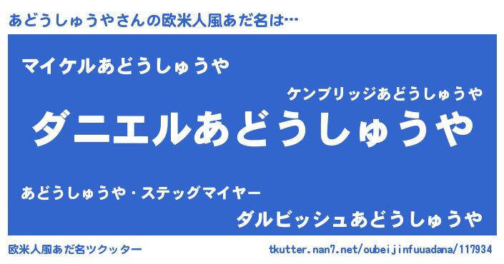 | ヒーロー風カッコイイあだ名 | 『慈愛の使者あどうしゅうや』 |