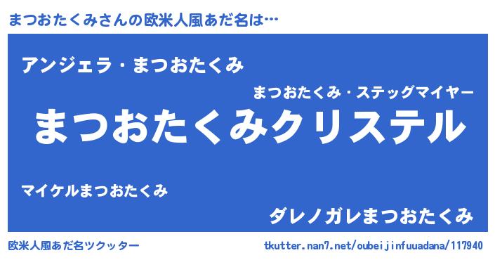 | 女子向けラノベタイトル風あだ名 | 『まつおたくみの雑貨屋さん』 |