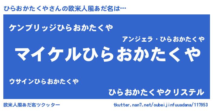 | 男性向けラノベタイトル風あだ名 | 『ひらおかたくやの憂鬱』 |