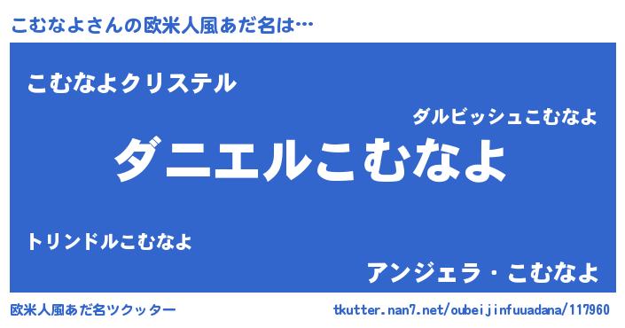 | 女子向けラノベタイトル風あだ名 | 『こむなよ恋絵巻』『こむなよの契約王妃』 |