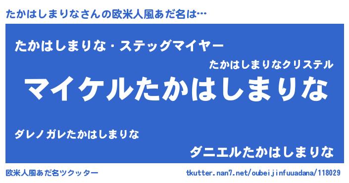 女子向けラノベタイトル風あだ名 | 『(仮)たかはしまりなのやんごとなき事情』 |