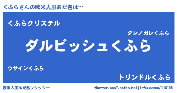 | 女子向けラノベタイトル風あだ名 | 『くふらの契約王妃』『くふら様がみてる』 |