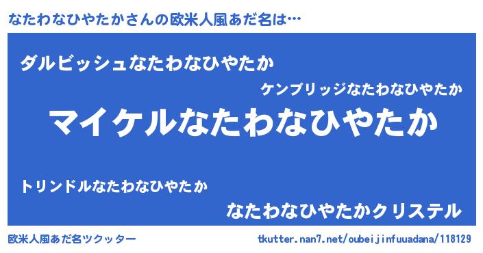 | ヘコむあだ名 | 『なたにー』『なたわなひやたか(笑)』 |
