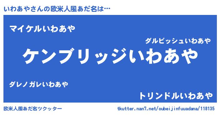 | 男性向けラノベタイトル風あだ名 | 『Re:いわあやから始める異世界生活』 |