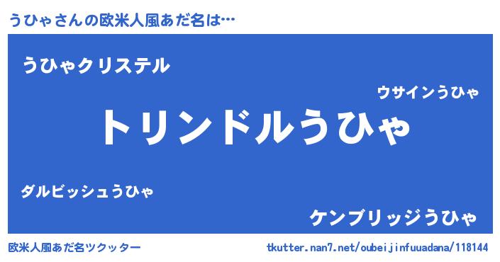 | ヒーロー風カッコイイあだ名 | 『ウルトラうひゃマン』『究極戦士ウヒャ』 |