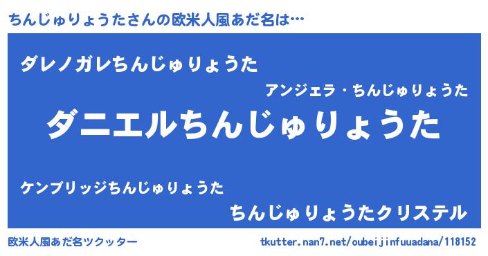 | 自動車の名前っぽいあだ名 | 『チンR』『チウディ』『チスラー』 |
