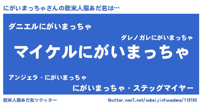 | 男性向けラノベタイトル風あだ名 | 『にがいまっちゃの憂鬱』 |