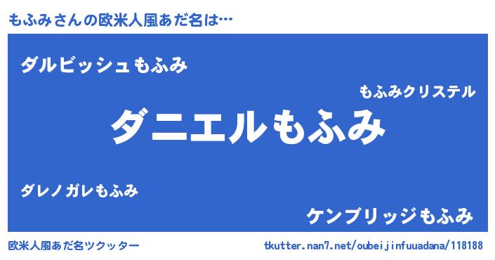 | ヘコむあだ名 | 『もふみ(爆)』『牛乳』『もふぷりん』 |