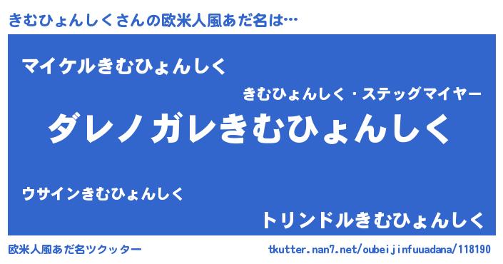 | 意味不明あだ名 | 『住所不定無職きむひょんしく(89歳)』 |