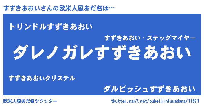 | 男性向けラノベタイトル風あだ名 | 『魔弾の王とすずきあおい』 |