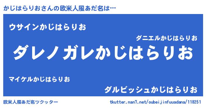 | 意味不明あだ名 | 『住所不定無職かじはらりお(4歳)』 |
