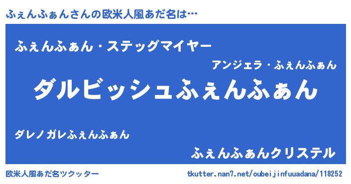| 男性向けラノベタイトル風あだ名 | 『ふぇんふぁんという概念が存在しない退屈な世界 』 |