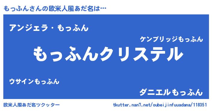 | 男性向けラノベタイトル風あだ名 | 『やはりもっふんの青春ラブコメはまちがっている 』 |