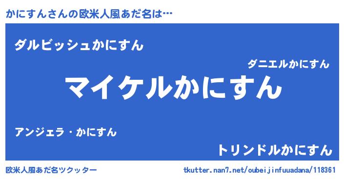 | 男性向けラノベタイトル風あだ名 | 『かにすんの憂鬱』 |