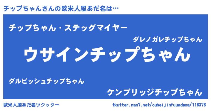| 男性向けラノベタイトル風あだ名 | 『チップちゃんの嫁は女の子じゃないと思った?』 |