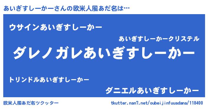 | 意味不明あだ名 | 『住所不定無職あいぎすしーかー(6歳)』 |