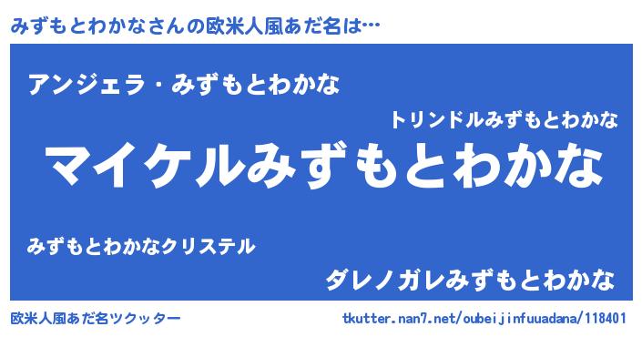 | 男性向けラノベタイトル風あだ名 | 『ミズモトワカナアートオンライン』 |