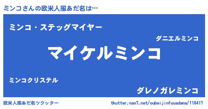 | ヒーロー風カッコイイあだ名 | 『スーパーミンコ』『仮面ミンダー』 |