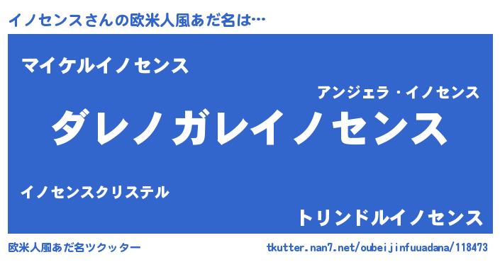 | 男性向けラノベタイトル風あだ名 | 『この素晴らしい世界にイノセンスを!』 |