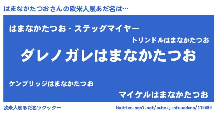 | 男性向けラノベタイトル風あだ名 | 『この素晴らしい世界にはまなかたつおを!』 |
