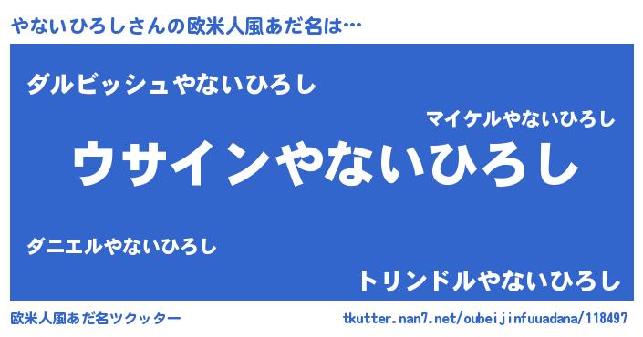 | 男性向けラノベタイトル風あだ名 | 『やないひろしの嫁は女の子じゃないと思った?』 |