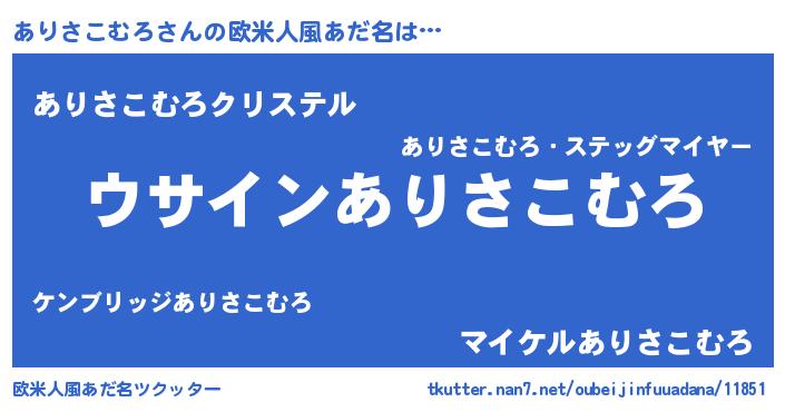 | 女子向けラノベタイトル風あだ名 | 『ありさこむろは平凡を望む』 |