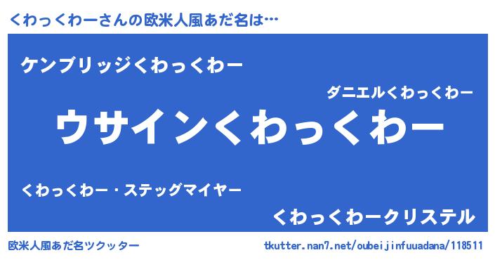 | 男性向けラノベタイトル風あだ名 | 『くわっくわーの嫁は女の子じゃないと思った?』 |