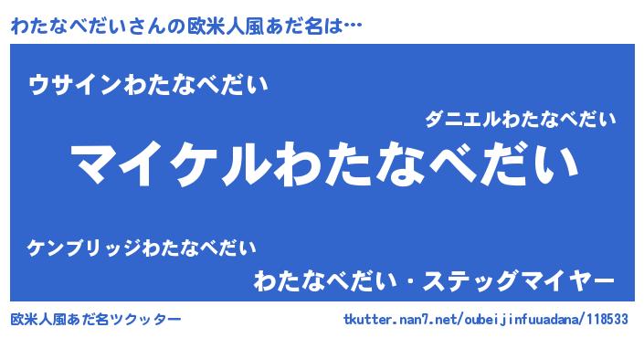 | 男性向けラノベタイトル風あだ名 | 『わたなべだいの憂鬱』 |
