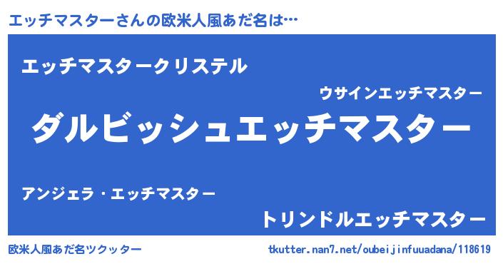 | 男性向けラノベタイトル風あだ名 | 『エッチマスターという概念が存在しない退屈な世界 』 |