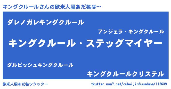 | 男性向けラノベタイトル風あだ名 | 『うちのキングクルールが世界を掌握している!』 |