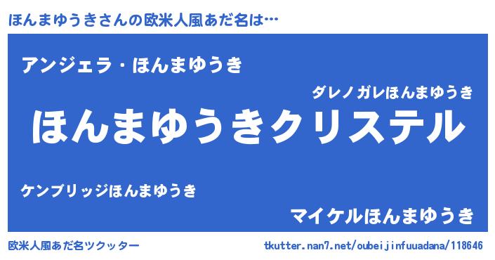 | 男性向けラノベタイトル風あだ名 | 『やはりほんまゆうきの青春ラブコメはまちがっている 』 |