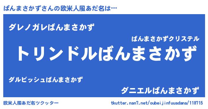 | ヒーロー風カッコイイあだ名 | 『仮面バンダー』『ネオバンマサカズ』 |