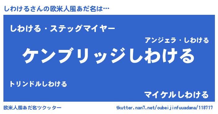 | 男性向けラノベタイトル風あだ名 | 『Re:しわけるから始める異世界生活』 |