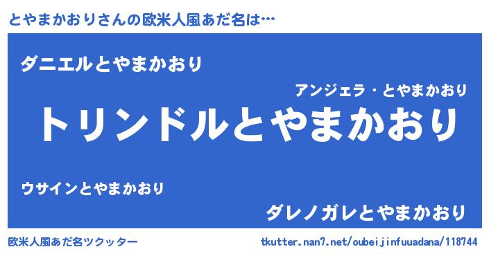 | 女子向けラノベタイトル風あだ名 | 『とやまかおりの玉の輿計画!』 |