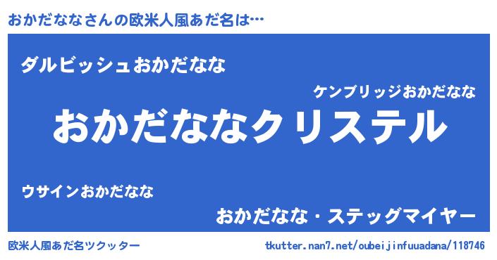 | 女子向けラノベタイトル風あだ名 | 『おかだなな伯爵の花嫁』 |