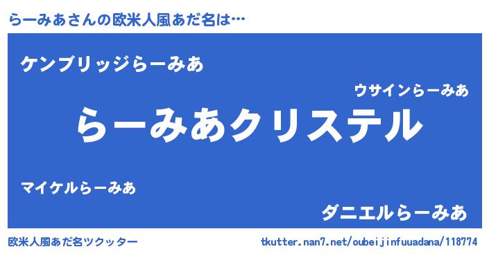 | 意味不明あだ名 | 『らーみあフォーエバー』『自称らーみあ』 |