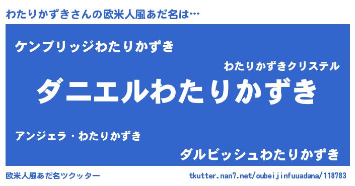 | ヘコむあだ名 | 『わたりかずき(震え声)』『豆乳』 |