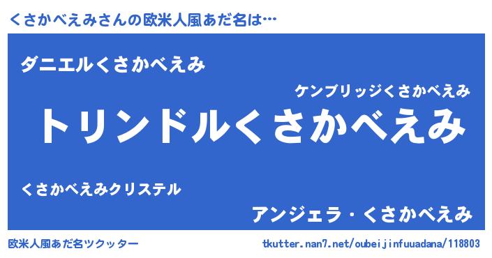| 肩書あだ名 | 『くさかべえみ少将』『くさかべえみ総統』 |