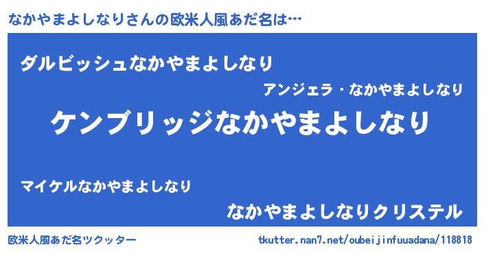 | 男性向けラノベタイトル風あだ名 | 『Re:なかやまよしなりから始める異世界生活』 |