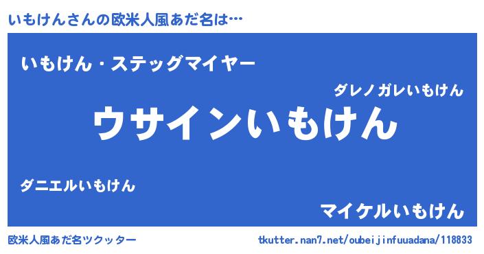 | 男性向けラノベタイトル風あだ名 | 『いもけんの嫁は女の子じゃないと思った?』 |
