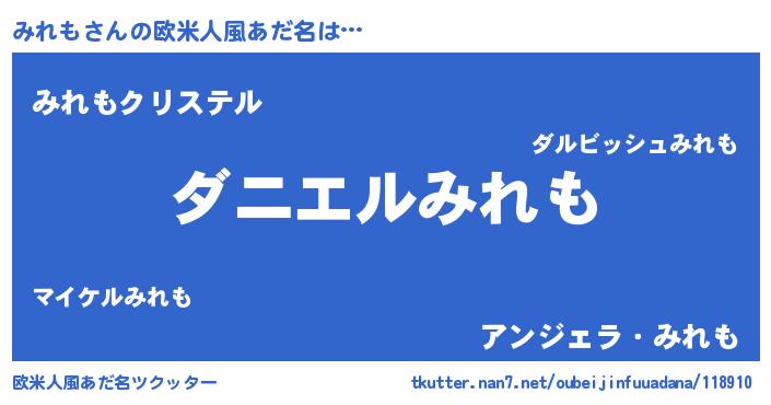 | ヒーロー風カッコイイあだ名 | 『愛の使者みれも』『ウルトラみれもマン』 |