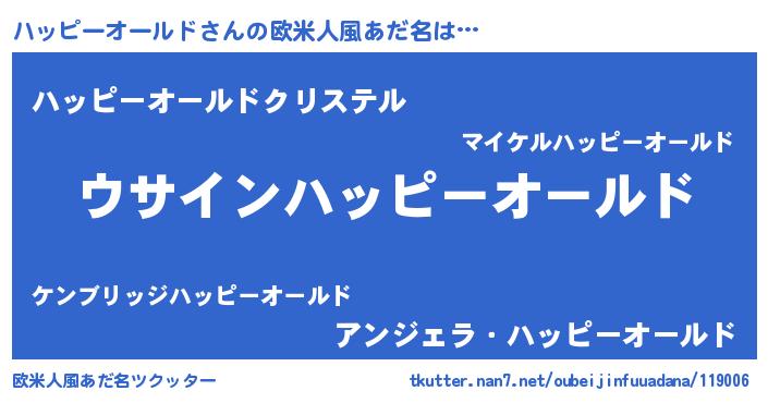 | 女子向けラノベタイトル風あだ名 | 『ハッピーオールドは平凡を望む』 |
