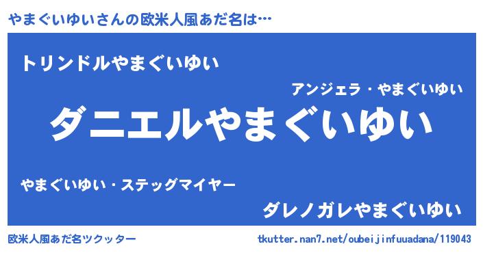 | 女子向けラノベタイトル風あだ名 | 『やまぐいゆい夫妻のなれそめ』 |