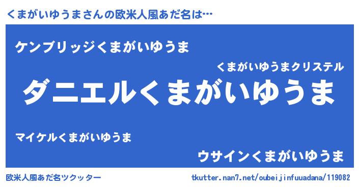 | 意味不明あだ名 | 『眠気覚ましガムくまがいゆうま味』 |