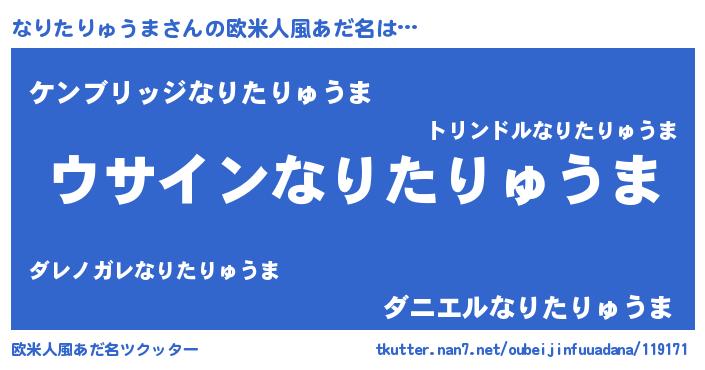 | 意味不明あだ名 | 『とにかく怪しいなりたりゅうま』 |