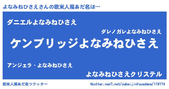 | 女子向けラノベタイトル風あだ名 | 『闇のよなみねひさえ』 |