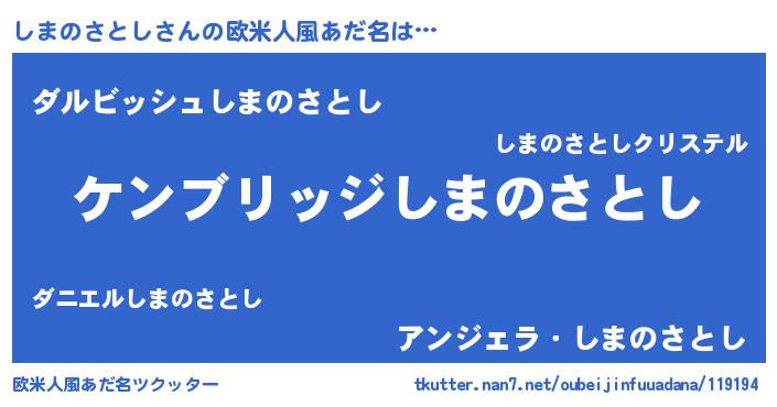 | 男性向けラノベタイトル風あだ名 | 『Re:しまのさとしから始める異世界生活』 |