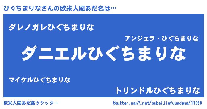 | 女子向けラノベタイトル風あだ名 | 『死神ひぐちまりなの再婚』 |